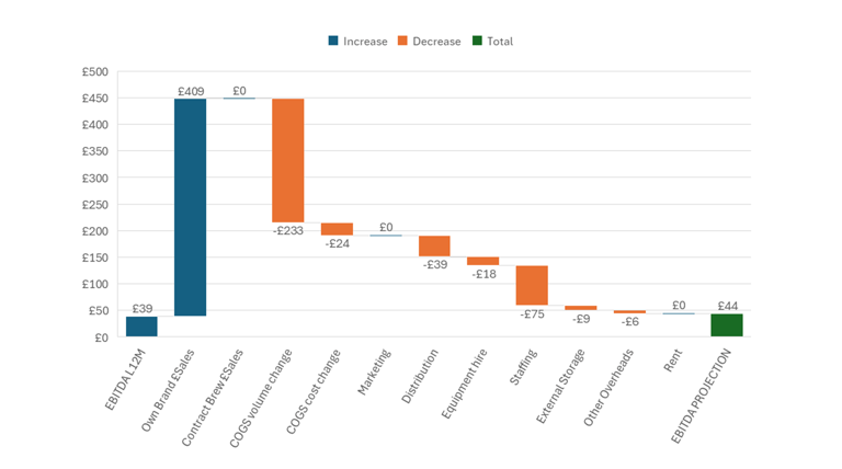All About The Beer can bring you answers by building intelligent financial models that show the full impact of different choices on your P&L. The modelling will show the impact of your decisions all the way down the P&L displayed in easy to read bridge charts. This ensures your choices are informed and you don't fall victim to hidden costs or bad assumptions again.